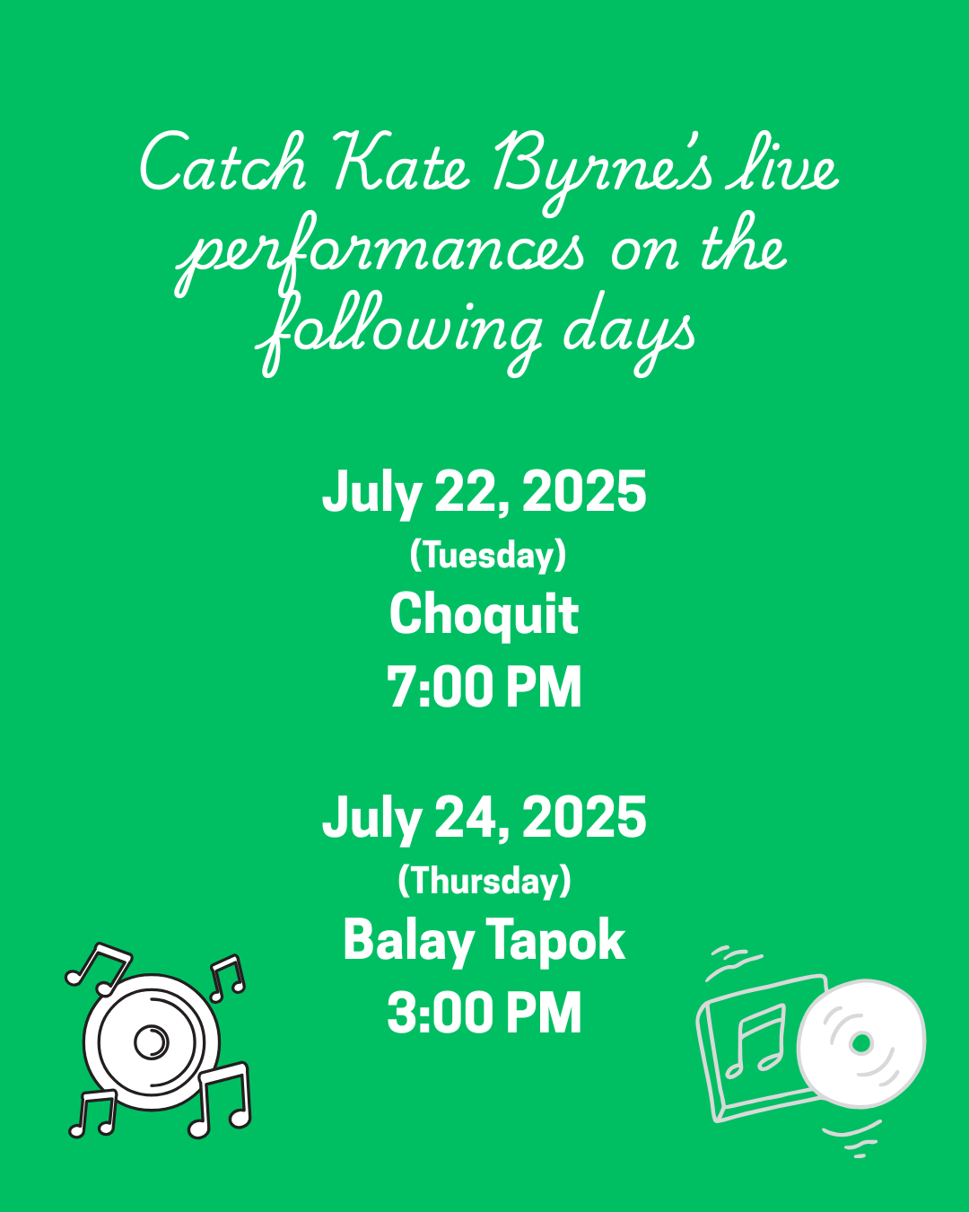 See you there!Catch Kate Byrne's live performances in Cagayan de Oro July 22, 2025 (Today), 7PM - Choquit Open Mic July 24, 2025 (Thursday), 3PM - Balay Tapok Market Pop-Up Open Mic See you there!0 Comments 0 Shares 379 Views 0 Reviews3