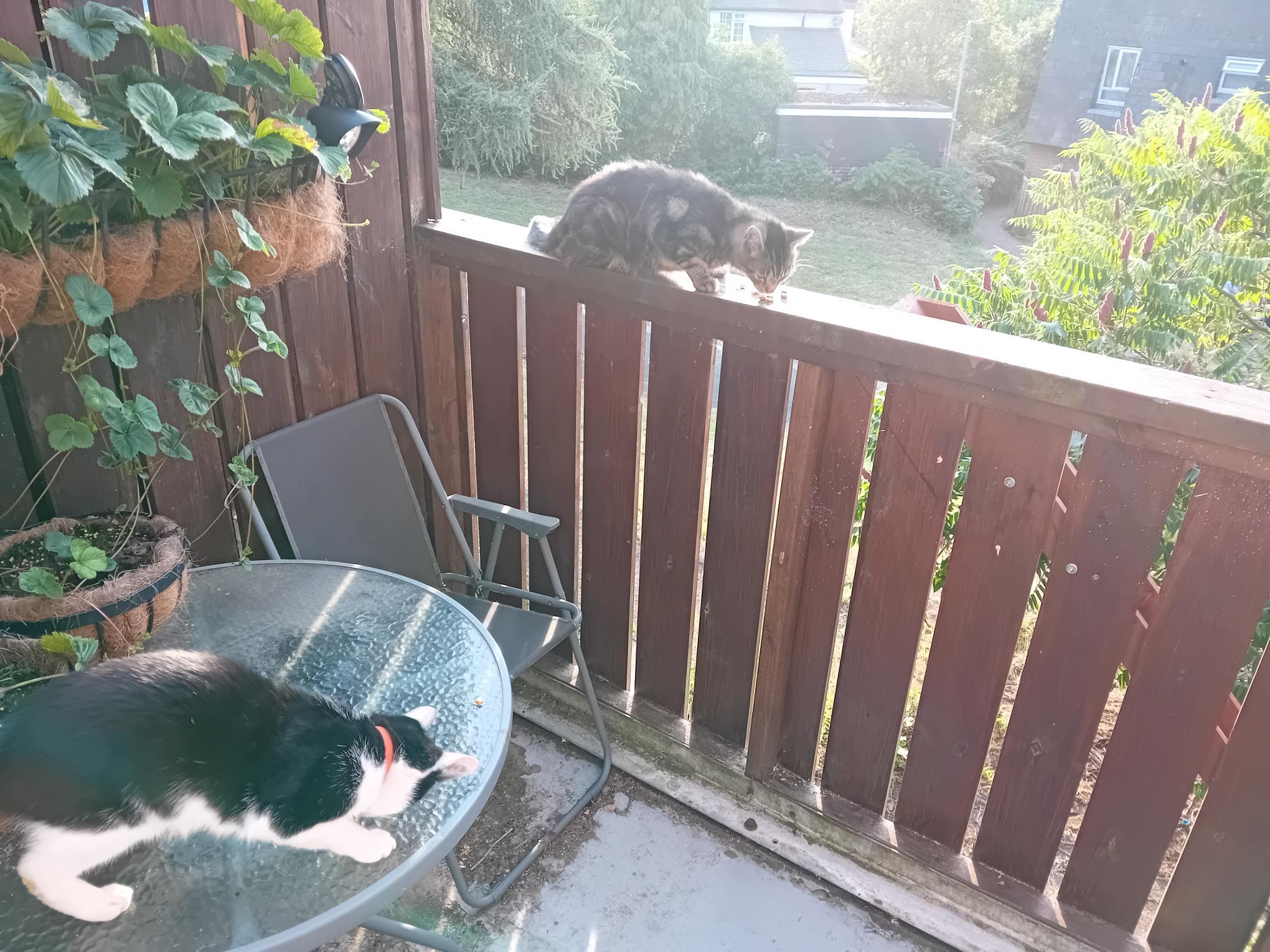Houston we have a problem! One of next doors cats came up the new cat ramp to say hello, mines the black and white one! #Cats #Funny #Pets